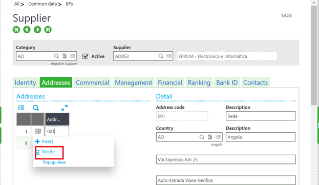 But if it is the Default address then first you need to make another address default address. So, if you already have another address for this Customer/Supplier/BP then make that address the default address. However if there is no other address you need to create a new address and make it the default address, in that case create a new address, enter the necessary address details click on the “Default address” check box to make it the default address and click on save. Now the address you want to delete is not the default address.