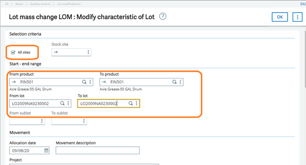 - Select the All sites check box when the lot number is existing at multiple sites for respective product.